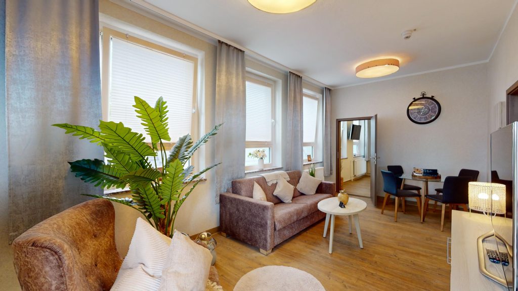 Bonus: Separates Wohn- und Schlafzimmer mit zusätzlicher Schlafcouch. Die Suite bietet somit Platz für 4 Personen.